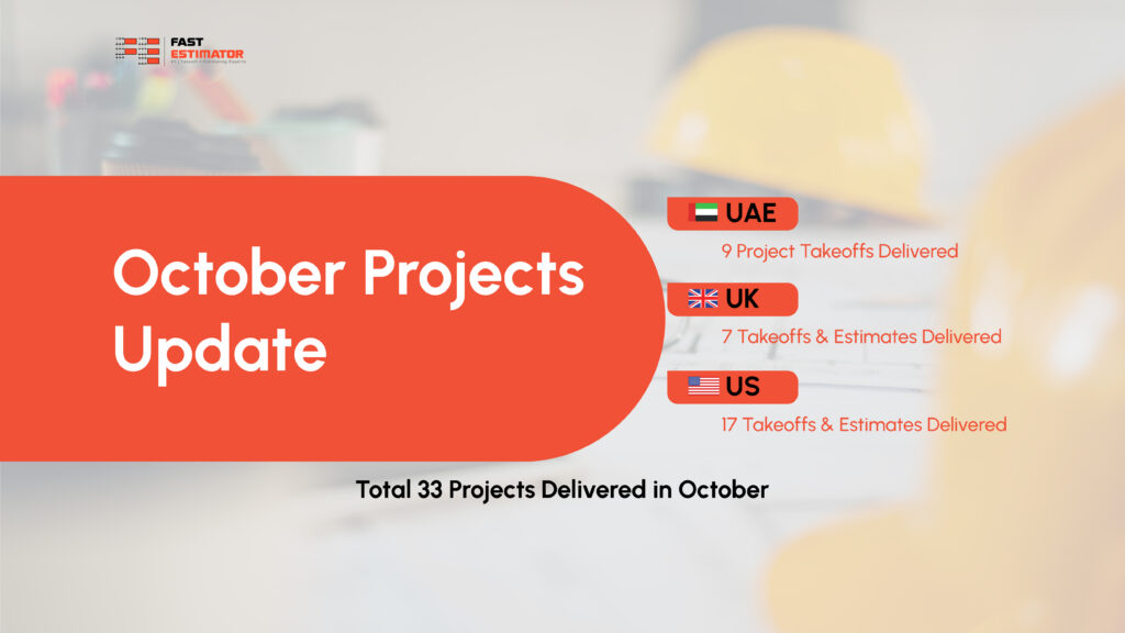 Fast Estimator recorded consistent growth throughout October, completing 33 detailed takeoffs and estimates for construction projects across the UAE, UK, and US. Each project reflected the company’s focus on accuracy, transparency, and efficiency in delivering professional construction estimating services.