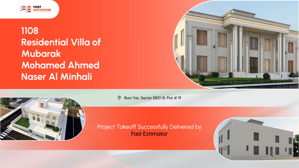 At Fast Estimator, we’re pleased to announce the successful completion of a detailed project takeoff for the Residential Villa of Mr Mubarak Mohamed Ahmed Naser Al Minhali, Sector EB10-B, Plot #19.