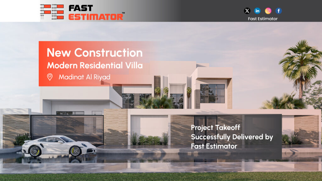 The successful project takeoff for the modern residential villa in Madinat Al Riyad demonstrates how expert estimating services can significantly improve project planning and execution.